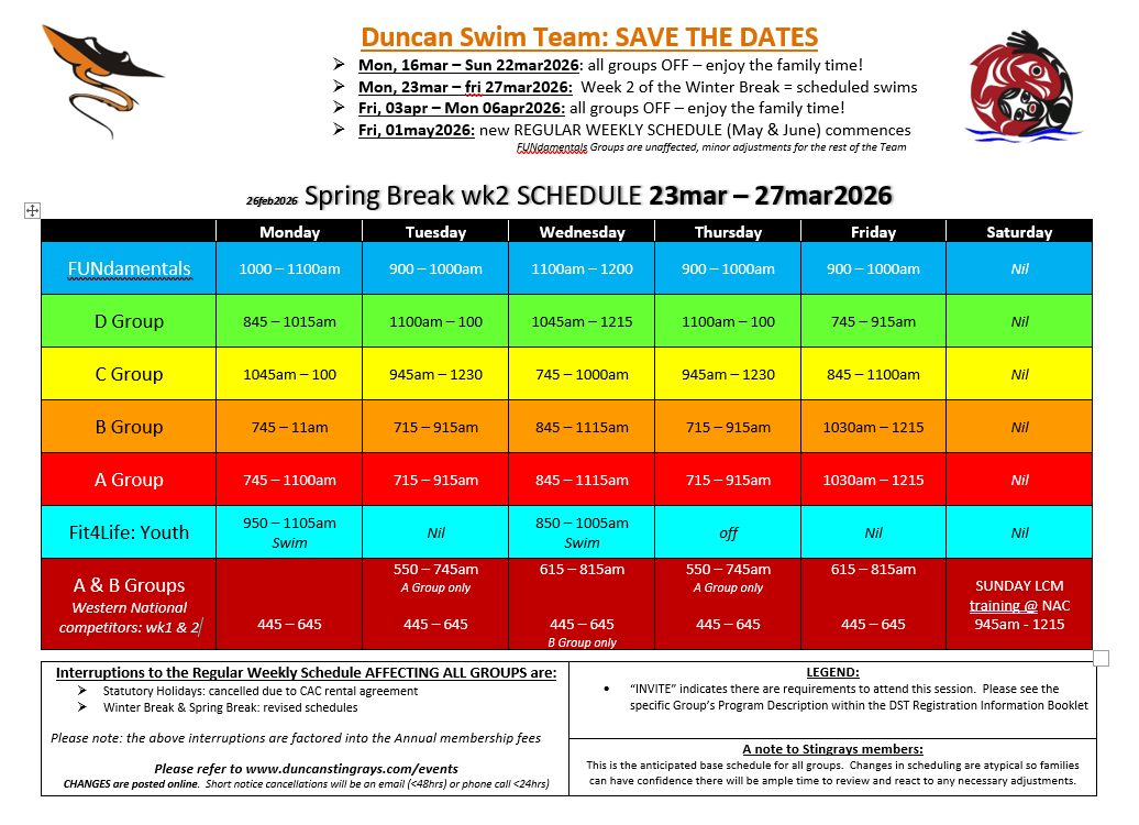 - A & B Groups (Westerns competitors) can expect the schedule as listed with updates on their S&C training + the post Provincials accommodations. Please note the LC training listed on SUNDAYs.